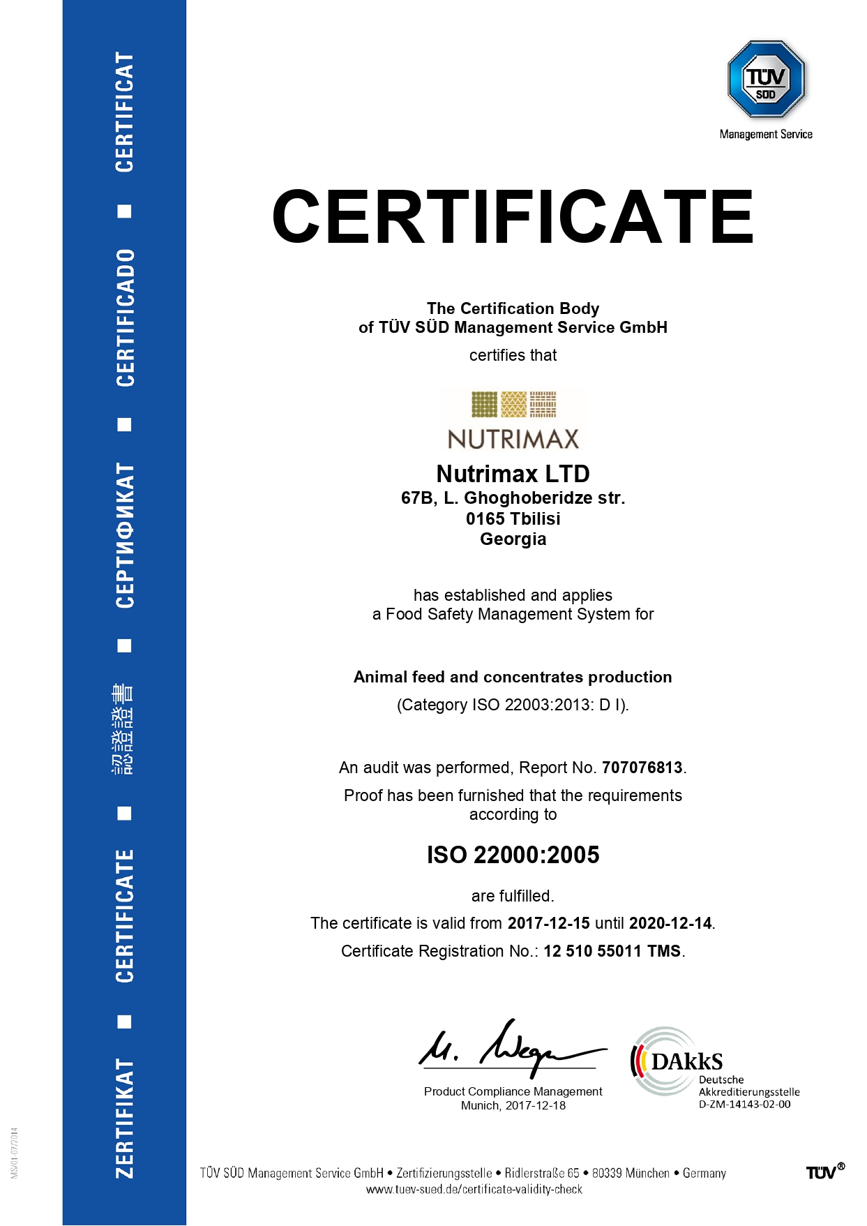 2023 წელს გაიხსნა კიდევ ერთი მაღალტექნოლოგიური კვების საწარმო, კომპანიონი ცხოველებისთვის და თევზის საკვების დამზადების შესაძლებლობით. ნუტრიმაქსი წარმოგიდგენთ მაღალი ხარისხის შინაური ცხოველების საკვებს ყველა ჯიშის ძაღლებისა და კატებისთვის. საკვების რეცეპტები სრულად შემუშავებულია გამოცდილი ნუტრიციოლოგებისა და ვეტერინარების მიერ. ეს ყველაფერი საშუალებას გვაძლევს ვაწარმოოთ სხვადასხვა ხარისხის საკვები, მათ შორის მაღალი და სუპერ პრემიუმ ხარისხის.